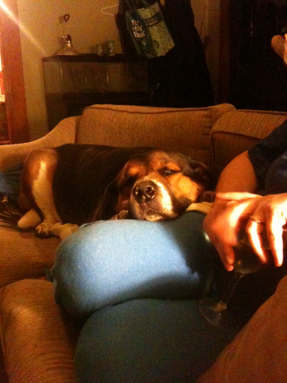 I miss you. You were my baby-dog and possibly the kindest soul I have ever encountered. Despite being half walker hound, half rottweiler you insisted on being a lap dog and, though I fussed and made loud noises, I loved it. Most dogs your size live to be only 7 or 8. Some get to 9. Very few get to 10. You did. Not only did you get to 10, but you did so after kicking cancer in the testicles two years ago. I know that most everyone we knew thought the decision to amputate your tumor-laden leg and start you on canine chemo was a silly one, but your recovery from the event was nothing short of miraculous. I admit to being quite worried that a dog your size wouldn’t be able to get along with just three legs, but you proved me wrong every day for over two years. One of the proudest moments of my puppy-fatherhood came when, just three weeks after surgery to remove your front paw, you successfully managed to pull off a tripod leg hike to pee on the fire hydrant on the corner. I have viewed that as the penultimate statement of your resilience and strength. That statement, by the way, can be vocalized thus, “PISS ON CANCER! Check me out, I’m hiking my leg on this hydrant!” The day you bounded across the yard to wrassle with your best friend, Brownie, literally brought a tear to my eye. You were adamant in your ability to defeat your foe, despite the fact that he would often use underhanded tactics and would sweep your one good front leg out from underneath you (we watched The Karate Kid a lot when he was a puppy). I joked often, in those last two years we weren’t supposed to have, that losing that leg might have been the greatest thing that had ever happened to you as it only slowed you down slightly and gave everyone who came nearby an almost demanding invitation to rub your belly. “Look, no paw, easy access to this belly. Rub away.”